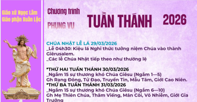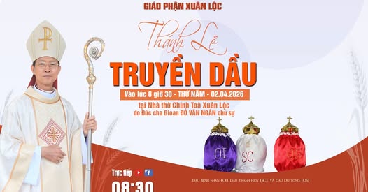 Thánh Lễ Truyền Dầu Giáo Phận Xuân Lộc 2026 tại Nhà Thờ Chính Tòa Do Đức Giám Mục Giáo Phận Chủ Sự https://giaophanxuanloc.net/chi-tiet/dai-le-truyen-dau-tai-nha-tho-chinh-toa-xuan-loc–bieu-tuong-cua-su-hiep-nhat-va-su-vu-thanh-hien Album LỄ TRUYỀN DẦU 2026 01/04/2026 – THÁNH LỄ TẠ ƠN & KÍNH ĐỨC MẸ MARIA NÚI CÚI – THÔNG PHẦN CUỘC KHỔ NẠN CỦA CHÚA GIÊSU. https://www.facebook.com/gpxuanloc.org/videos/1596277771677316