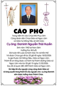 Cụ ông Đa Minh Nguyễn Thái Huyền 84 tuổi, Giáo họ Mông Triệu, Qua đời 18/02/2026, Thánh lễ an táng 5h15 thứ bảy 21/02/2026
