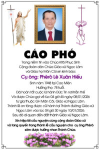 • ← Cụ Ông Giuse Phạm Ngọc Ninh 77 tuổi, Giáo họ Vô Nhiễm, Qua đời 06/01/2026, Thánh lễ an táng 4h30 thứ sáu 09/01/2026