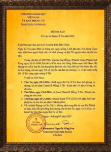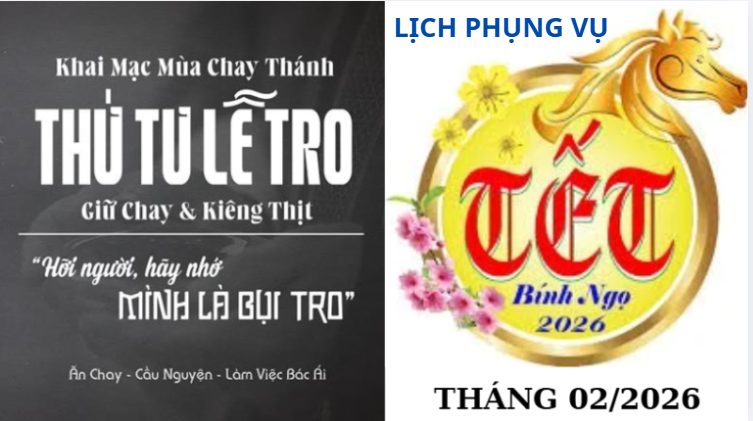 | Thứ sáu 20/02/2026 | Mùng bốn tết LễTro có 4 Thánh lễ: 4h30, 6h00, 17h30 và 19h. Ăn chay kiêng thịt |