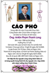 Ông Antôn Phạm Thanh Long 67 tuổi, Giáo họ Tử Đạo, Qua đời 30/12/2025, Thánh lễ an táng 4h30 thứ sáu 02/01/2026