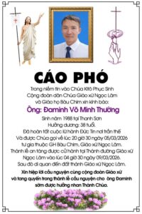 Ông Đaminh Võ Minh Thường 38 tuổi, Giáo họ Bàu Chim, Qua đời 05/03/2026, Thánh lễ an táng 04h30 thứ hai 09/03/2026