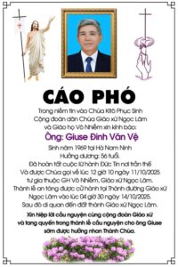 Ông Giuse Đinh Văn Vệ 56 tuổi, Giáo họ Vô Nhiễm, Qua đời 11/10/2025, Thánh lễ an táng 4h30 thứ ba 14/10/2025