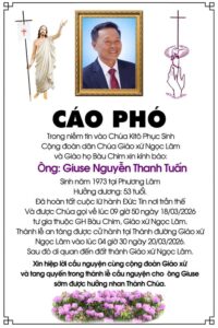 Ông Giuse Nguyễn Thanh Tuấn 53 tuổi, Giáo họ Bàu Chim, Qua đời 18/03/2026, Thánh lễ an táng 4h30 thứ sáu 20/03/2026