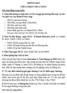 THÔNG BÁO CHÚA NHẬT 1 MÙA VỌNG