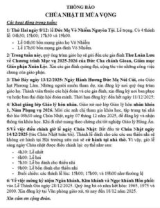 THÔNG BÁO CHÚA NHẬT 2 MÙA VỌNG