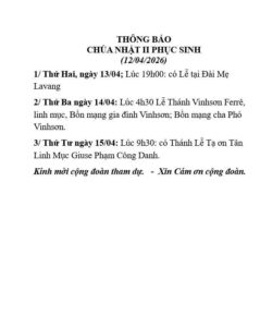 Thông báo Chúa Nhật 2 Phục Sinh và Ngày Ơn Gọi tại Ngọc Lâm Chúa Nhật 26/04/2026