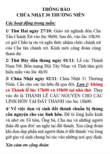 THÔNG BÁO CHÚA NHẬT 30 THƯỜNG NIÊN