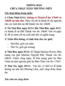 THÔNG BÁO CHÚA NHẬT 31 THƯỜNG NIÊN