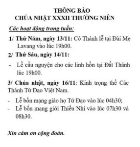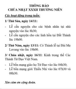 THÔNG BÁO CHÚA NHẬT 32 THƯỜNG NIÊN