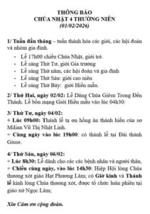 THÔNG BÁO CHÚA NHẬT 4 THƯỜNG NIÊN 01/02/2026