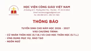 Học viện Công giáo Việt Nam thông báo tuyển sinh chương trình thần học, mục vụ và ngôn ngữ năm 2026
